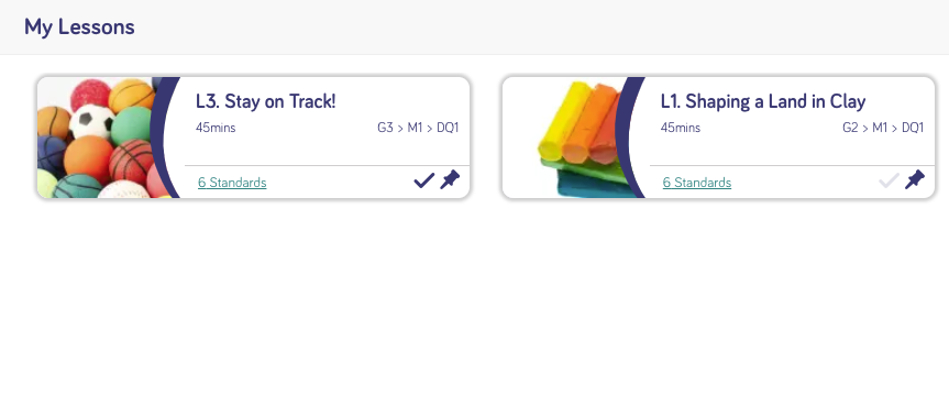 Lessons can be pinned to your Teacher Dashboard. Lessons can be marked as complete, which is then tracked in your Curriculum Progression Tracker. Or you can remove a lesson completely from your My Lessons section by following the steps below.