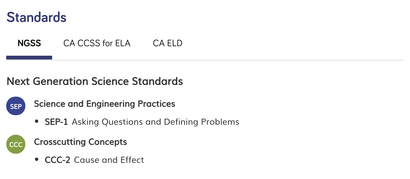 Each Twig Science lesson is mapped to the relevant curriculum standards. You can view the associated standards by navigating to a lesson. Follow the steps below to see associated standards.