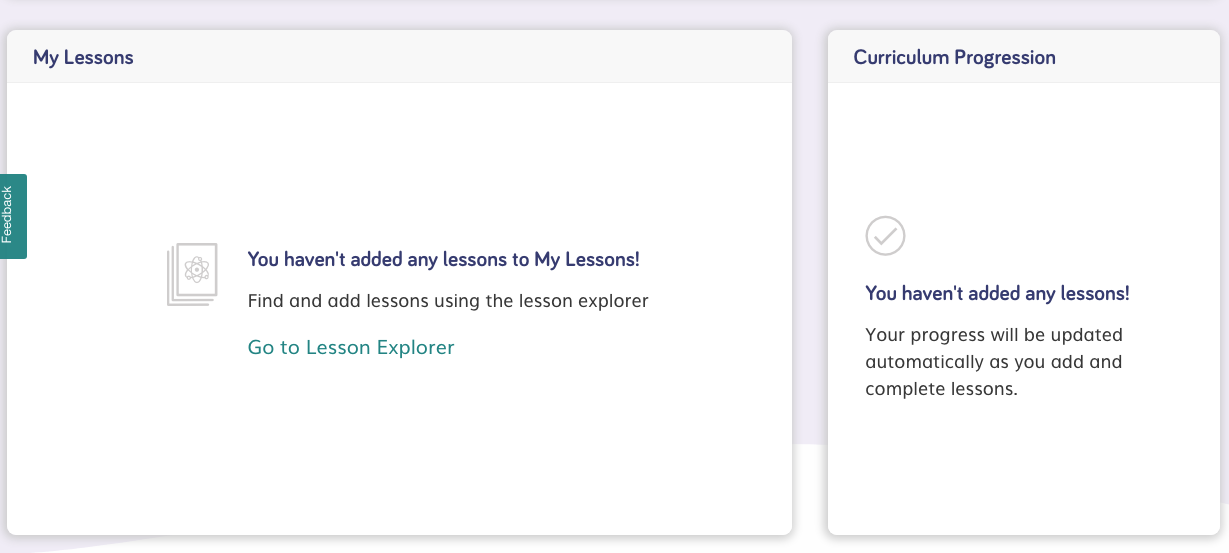 Prior to pinning any lessons your Curriculum Progression tracker will be empty.