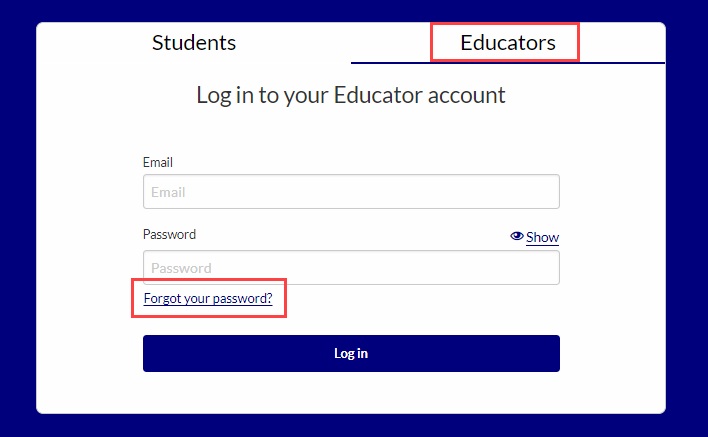 Educators log in to the Imagine Learning Product Portal and/or Imagine Math portal using their Imagine Learning account email address and password. If you are an Administrator or Teacher, you can reset your own password or recover your Imagine Learning account email address.